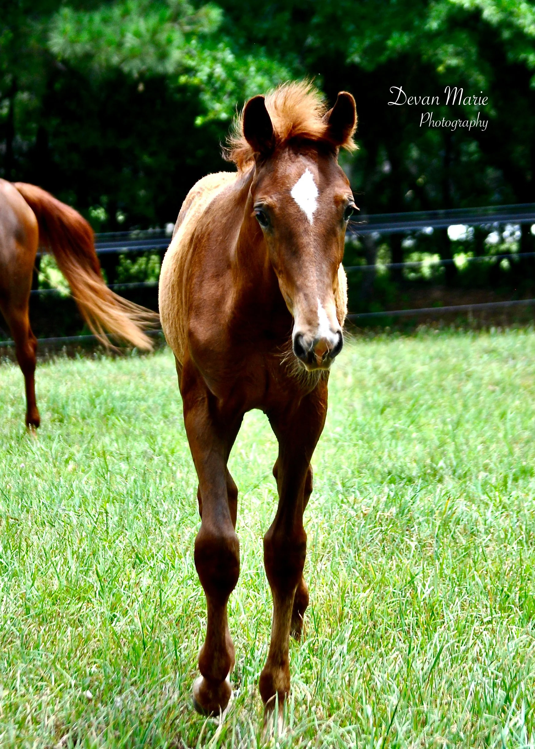 “Santi” is a barn favorite. This tall and friendly filly will be retained by NDSH for future breeding and competition.